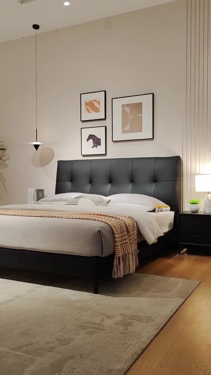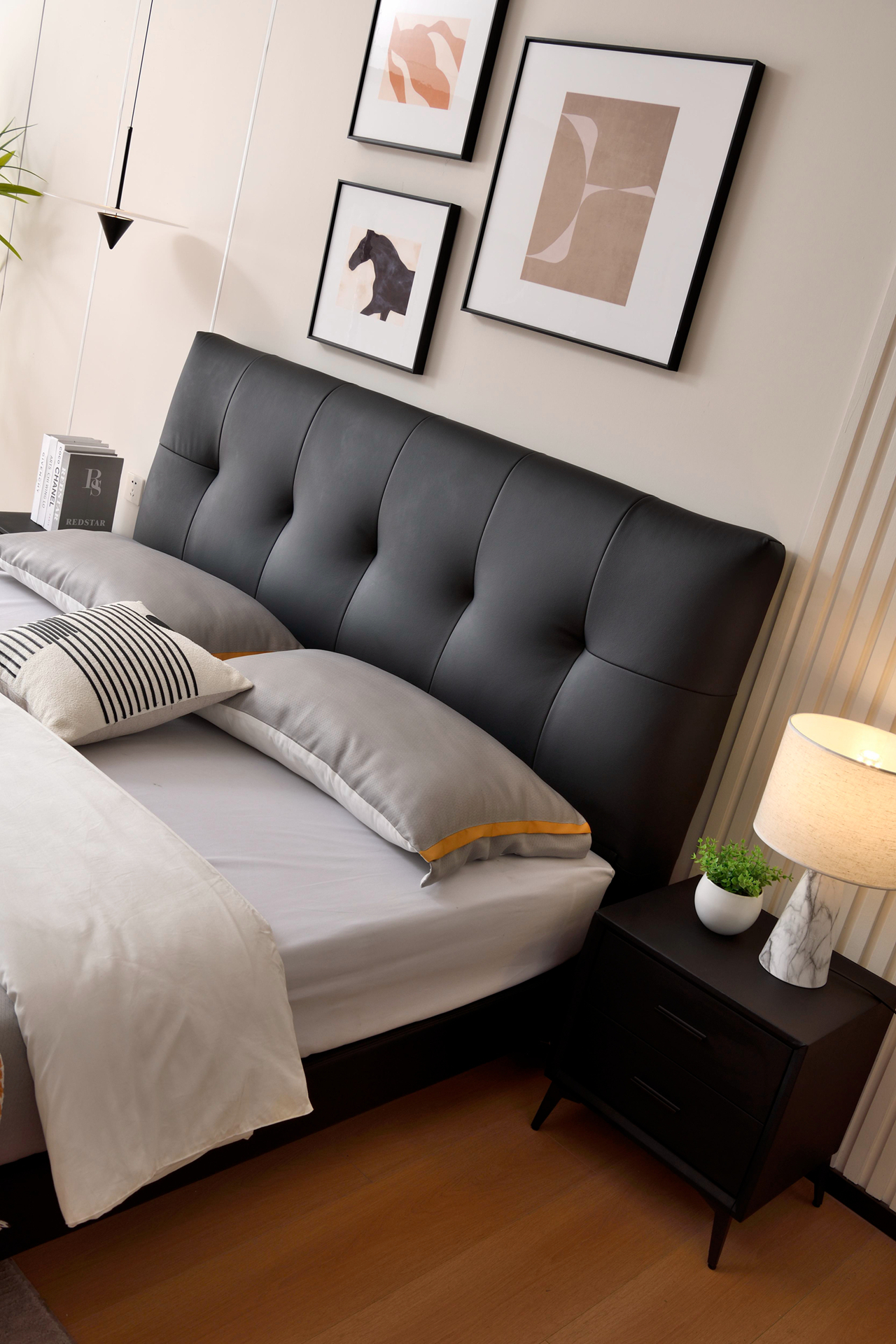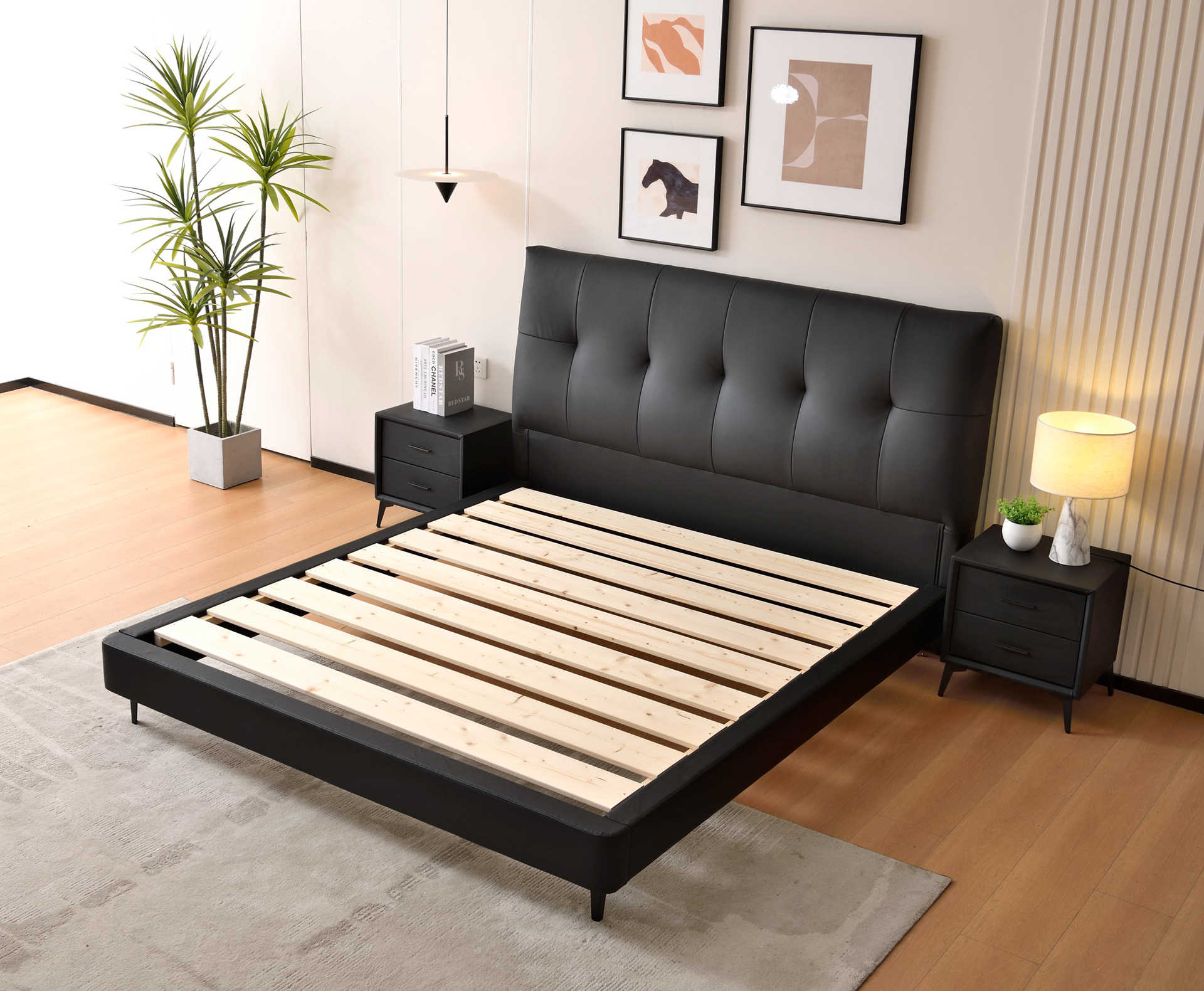 型号 5015颜色 耀夜黑面料 生态真皮太阳纹配置:80*150mm盒子床边 40*90mm松木龙骨 20*150mm松木床板外围尺寸 1.5M: 1550*2160*1180mm1.8M: 1850*2160*1180mm