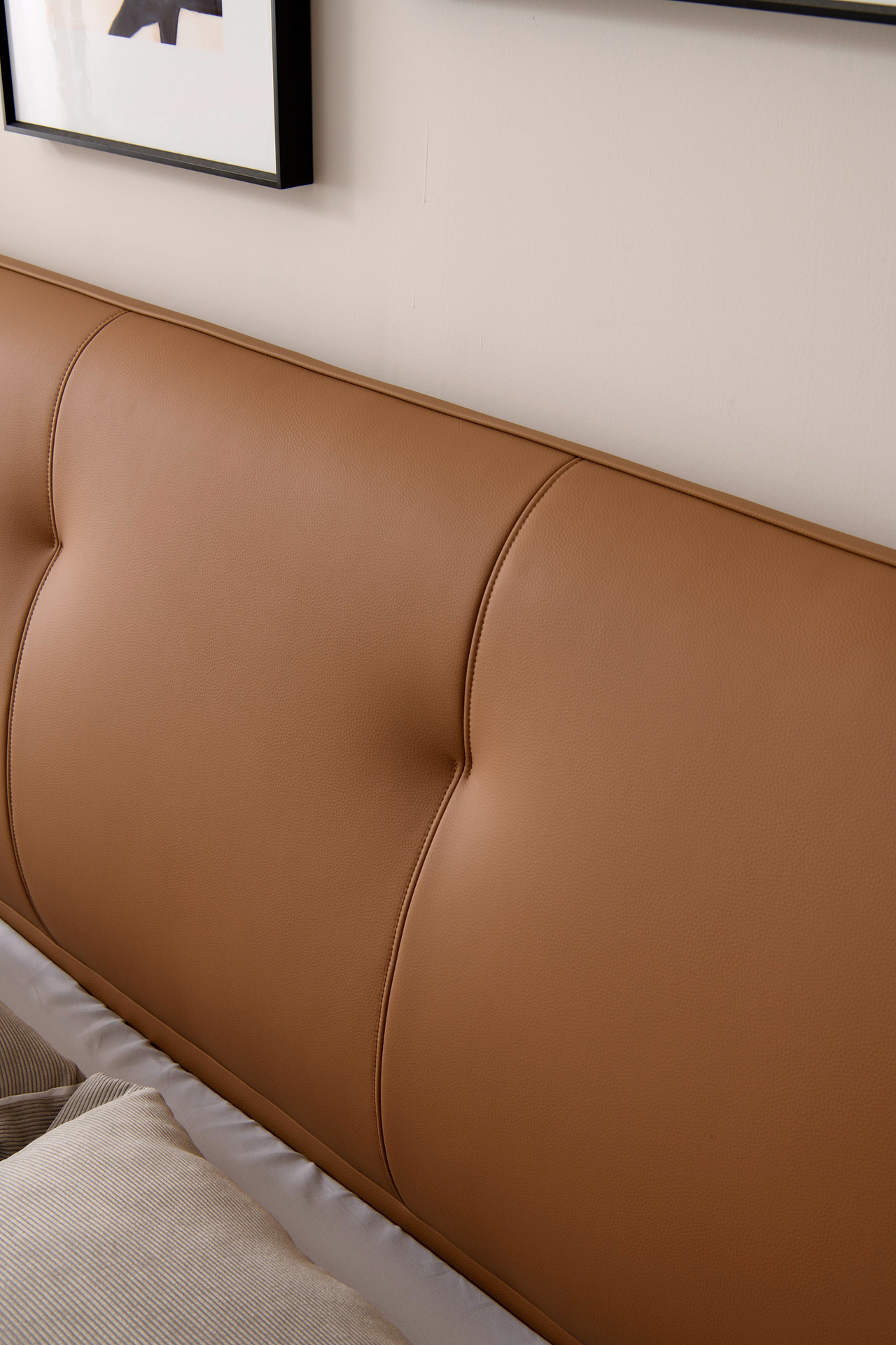 型号: A5016颜色:熔岩橙材质:生态真皮 太阳纹 三防面料 防水 防刮 防污配置:80*150mm盒子床边 40*90mm松木龙骨 20*150mm松木床板纸箱:K636C外围尺寸 1.5M: 1540*2150*1150mm1.8M: 1840*2150*1150mm