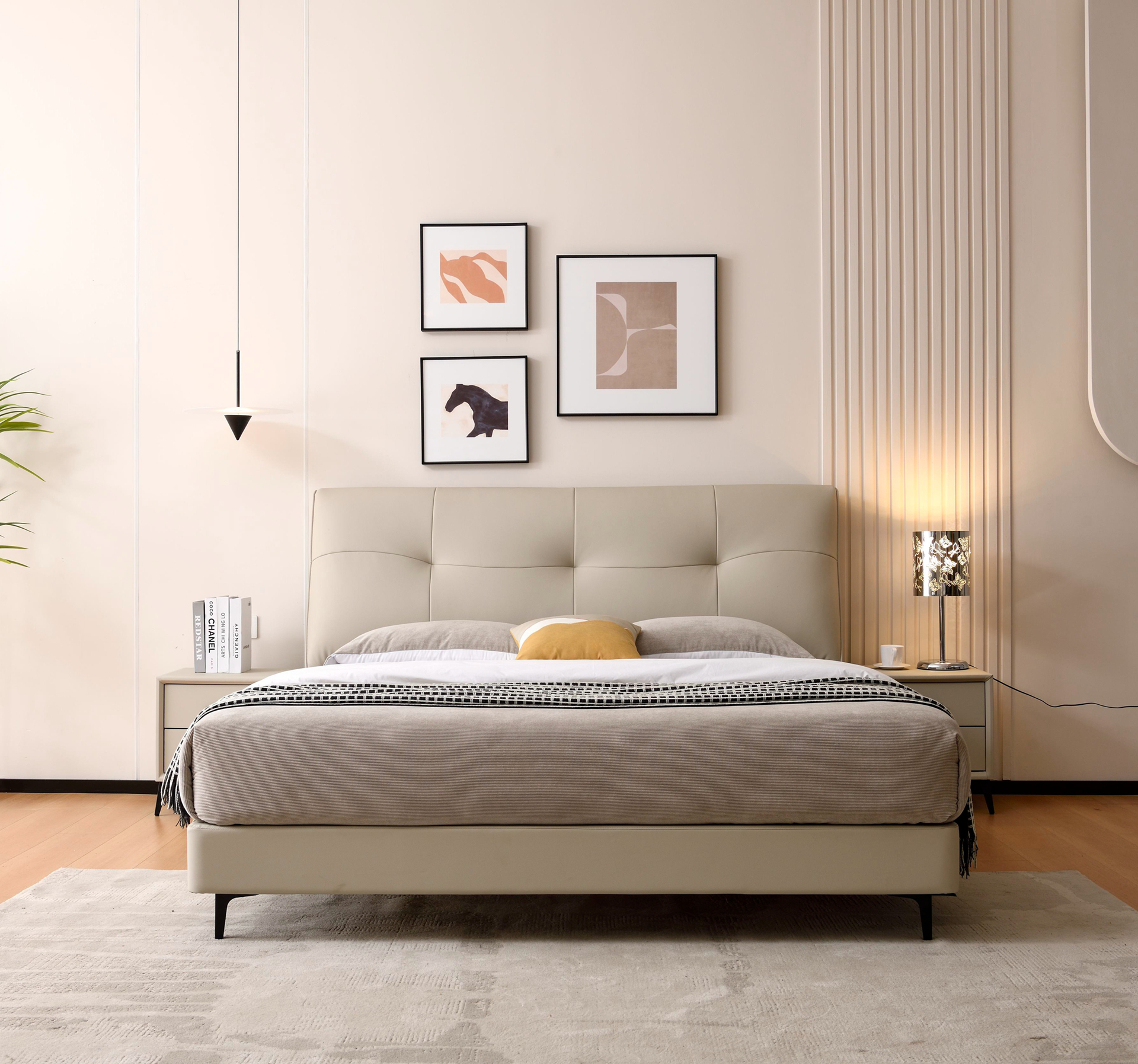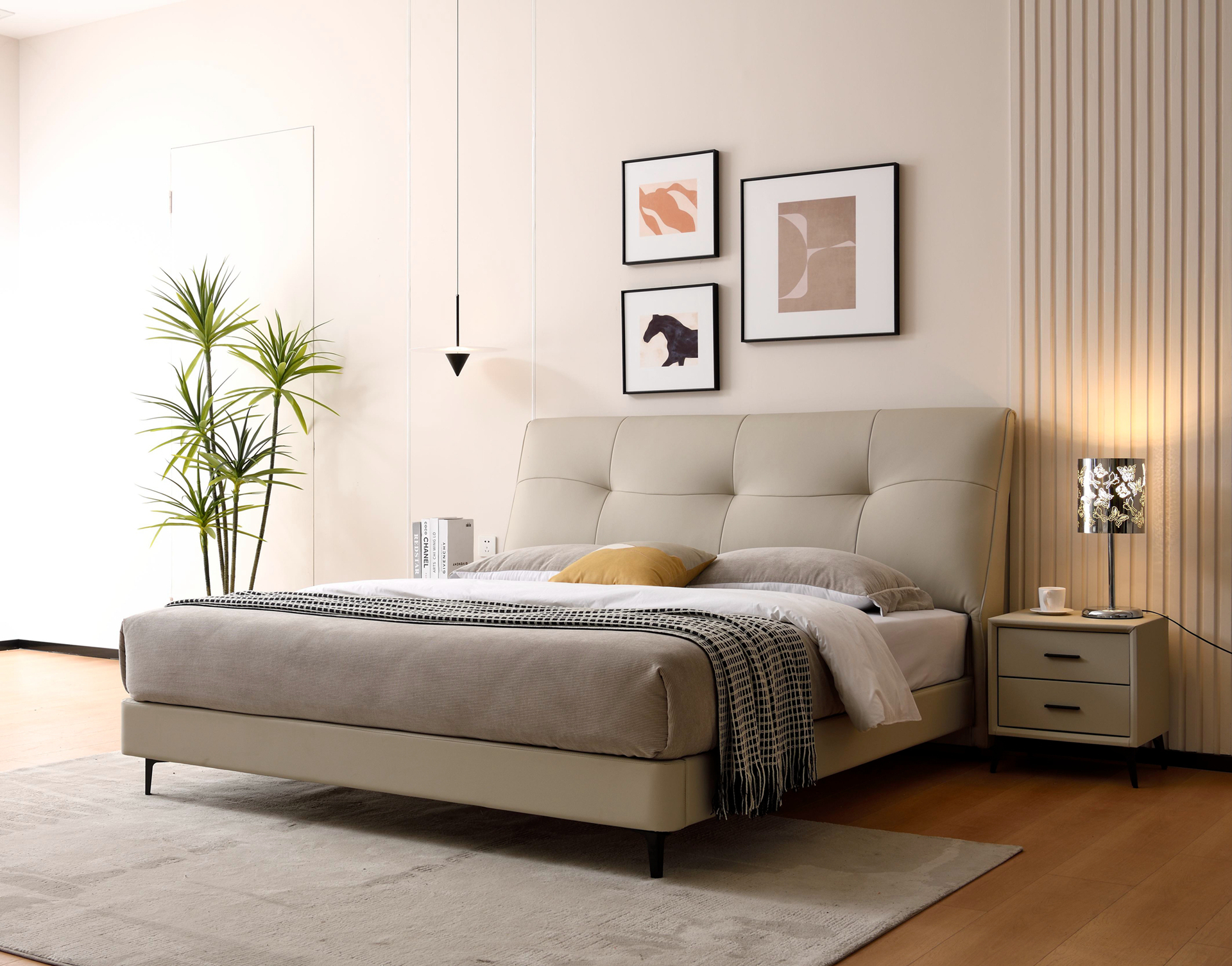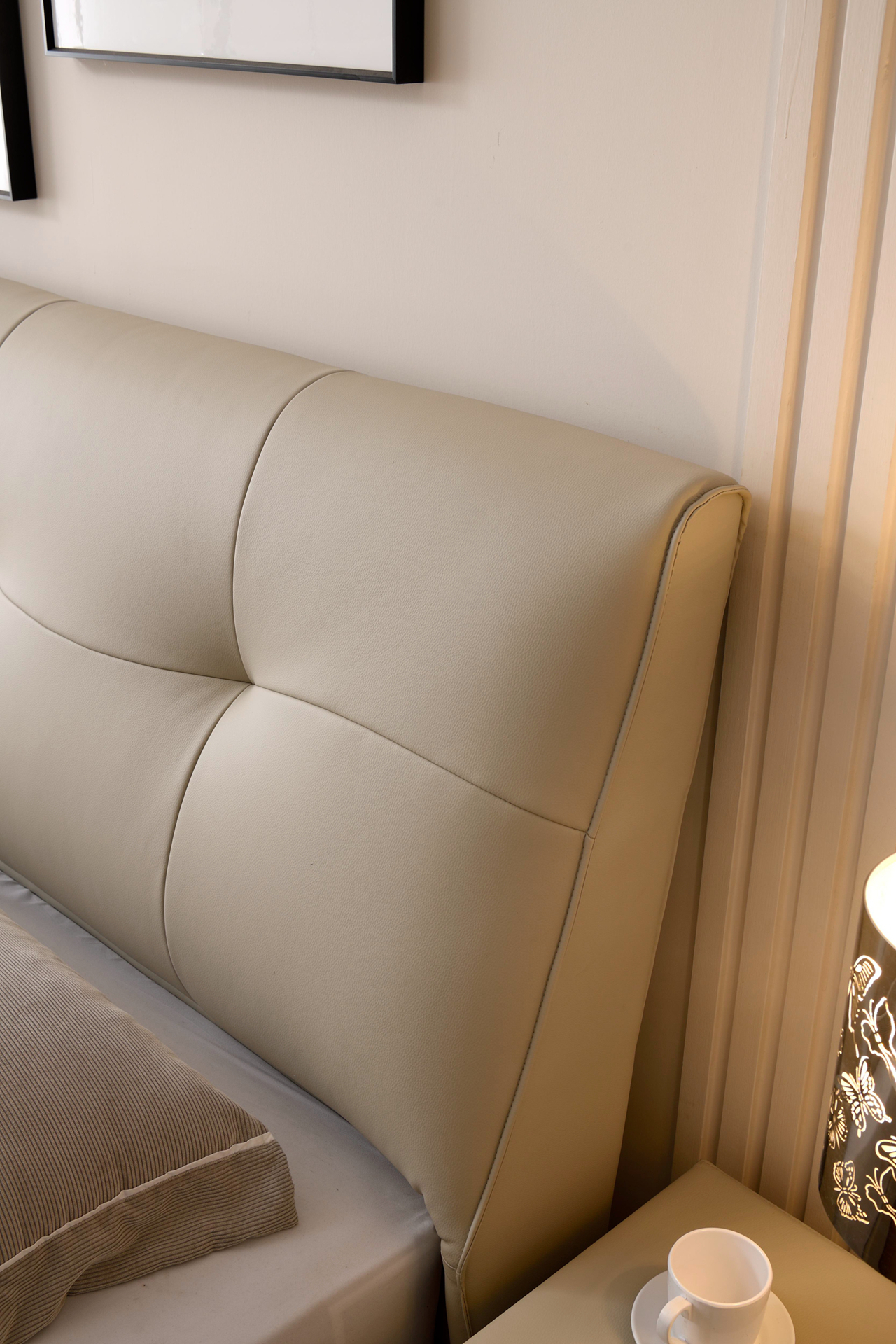 型号:A5019颜色:银河白材质:生态真皮 太阳纹 三防面料 防水 防污 防刮 (带去污功能)配置:80*150mm盒子床边 40*90mm松木龙骨 20*150mm松木床板纸箱:K636C外围尺寸 1.5M: 1620*2250*1160mm1.8M: 1920*2250*1160mm