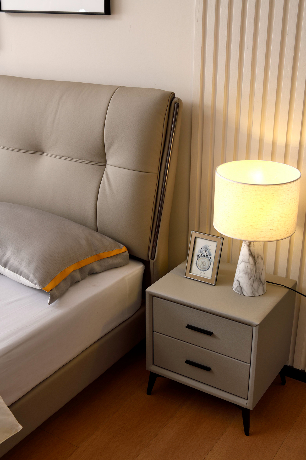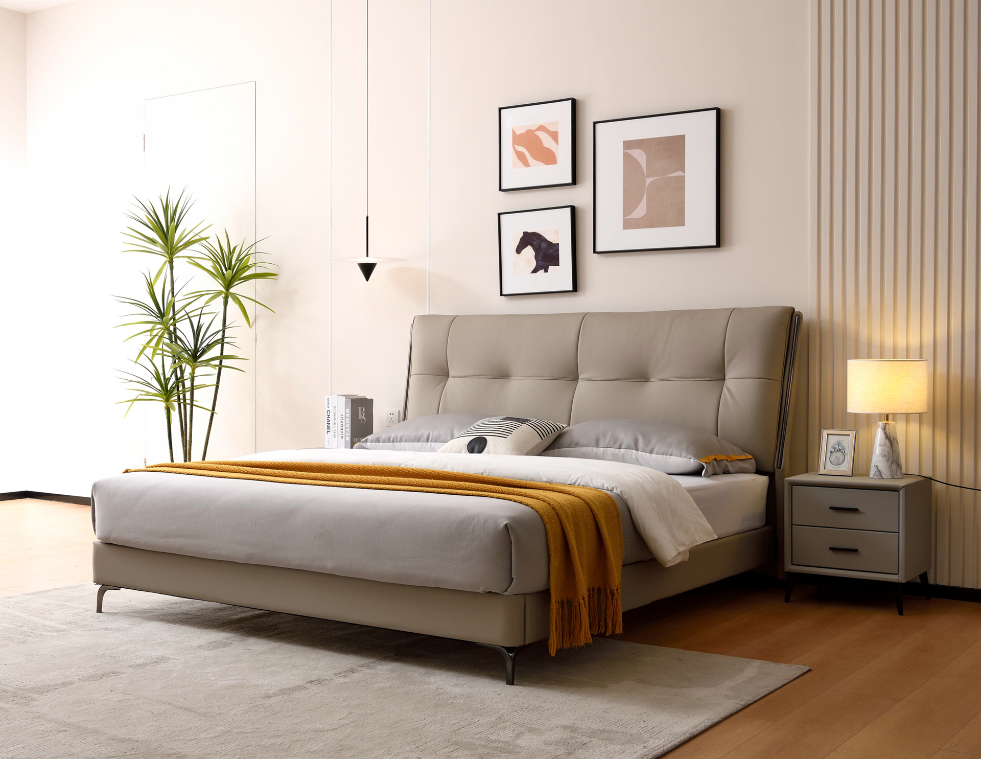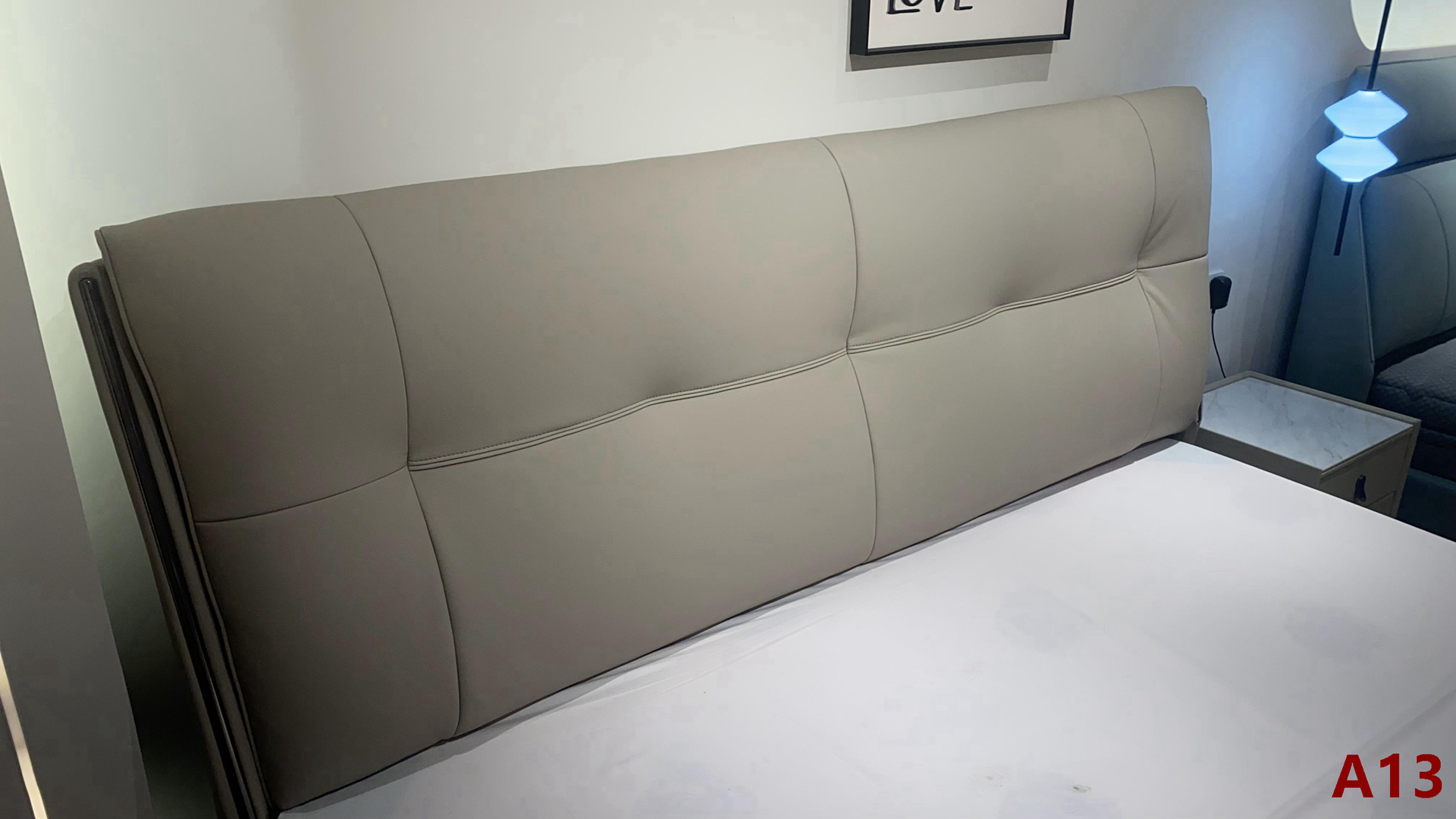 型号:A13颜色:星空灰材质:生态真皮 太阳纹 三防面料 防水 防刮 防污配置:60*150松木床边 30*150mm松木龙骨 25*200mm松木床板 枪色钛金一体脚纸箱:K636C尺寸:外围尺寸1.5M: 1690*2180*1180mm1.8M: 1990*2180*1180mm
