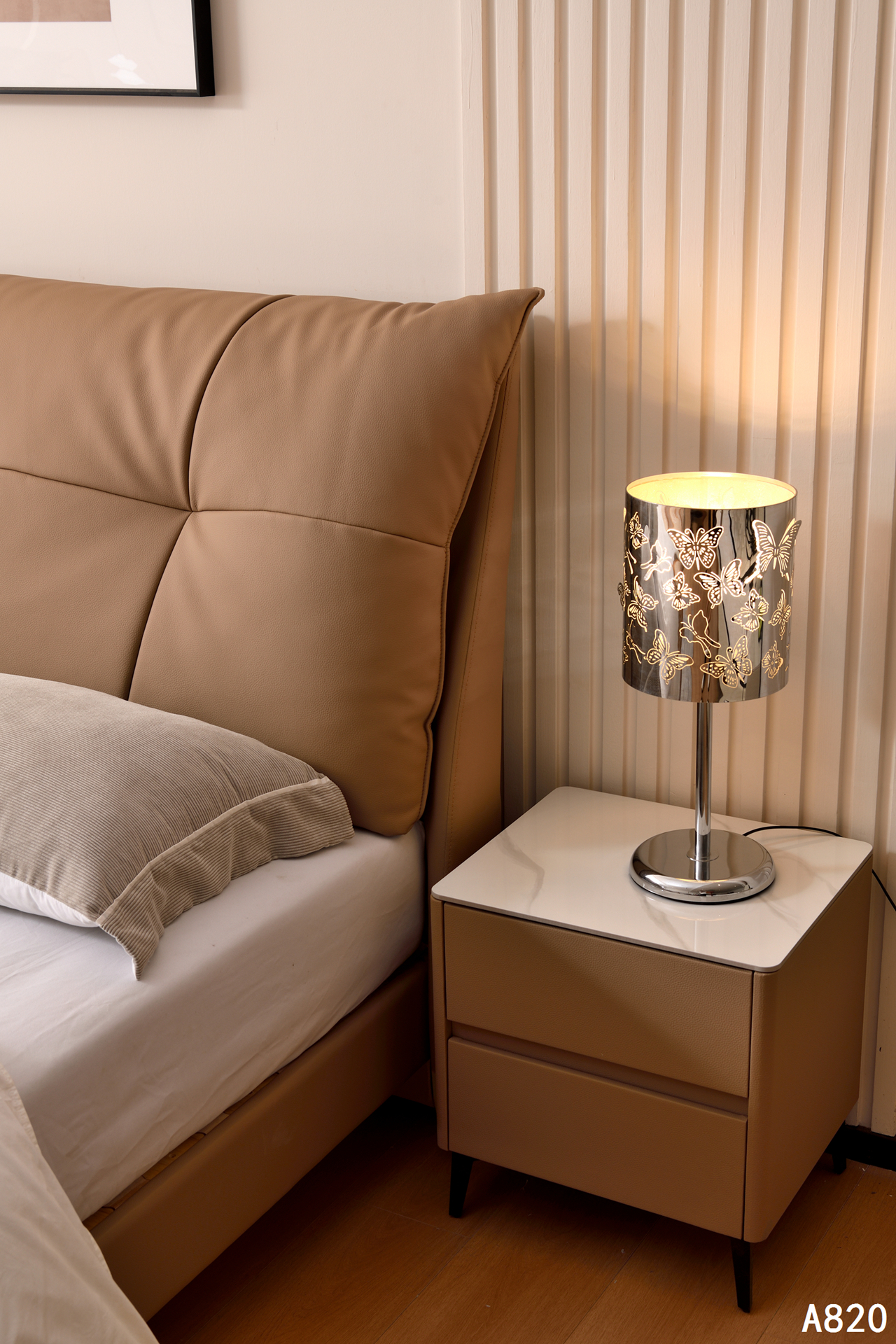 型号:A820颜色:亚麻黄(德芙超柔-9)可拆洗羽绒填充材质:生态真皮、太阳纹 、德芙超柔、 防水、 防刮配置:40*150mm橡木榫卯床边 20*300mm橡木满铺床板 40*100mm松木龙骨纸箱:K636C外围尺寸1.5M: 1680*2180*1190mm1.8M: 1980*2180*1190mm
