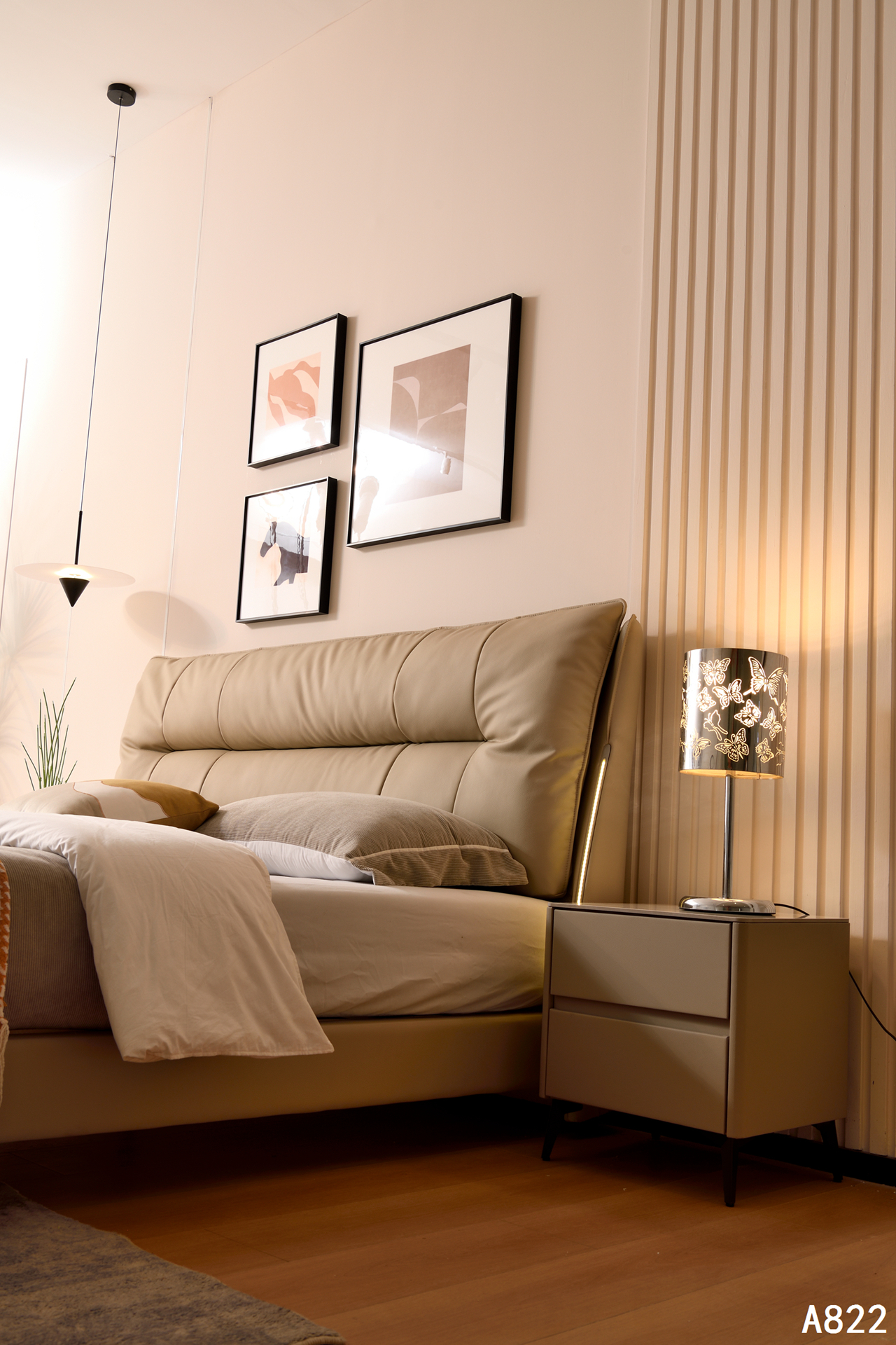 型号:A830颜色:冰川灰面料:米兰生态真皮配置:80*150mm盒子床边 30*150mm松木龙骨 6D满铺松木床板外围尺寸1.5M: 1700*2200*1200mm1.8M: 2000*2200*1200mm