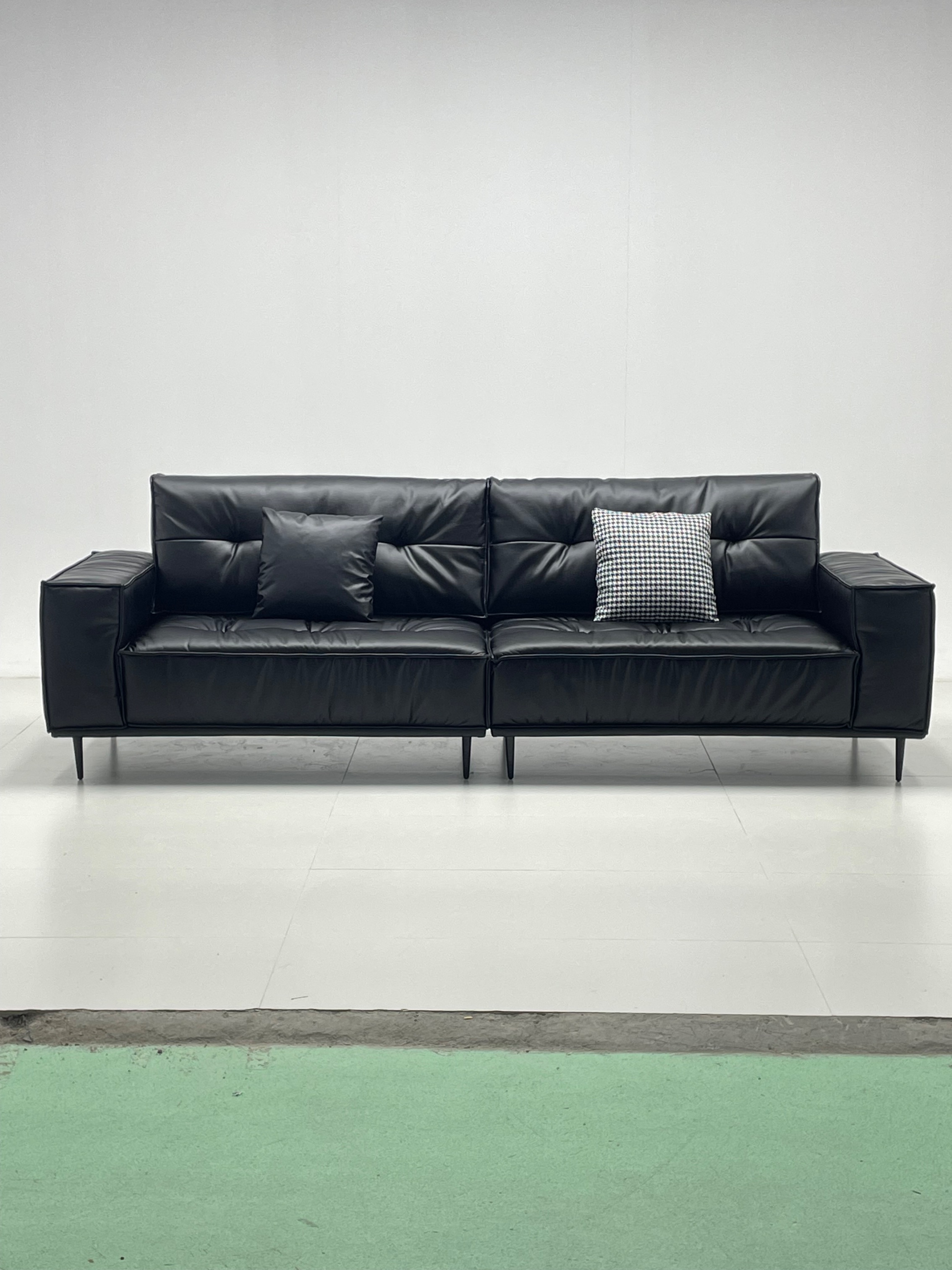 型号:方格沙发(高定款)材质:生态真皮+进口落叶松实木框架+加宽7cm橡筋+镀铬蛇簧+东亚40高密度海绵+座包靠背白鹅绒填充皮质:生态真皮规格:2400*950*940mm2600*950*940mm2800*950*940mm3000*950*940mm3200*950*940mm3400*950*940mm