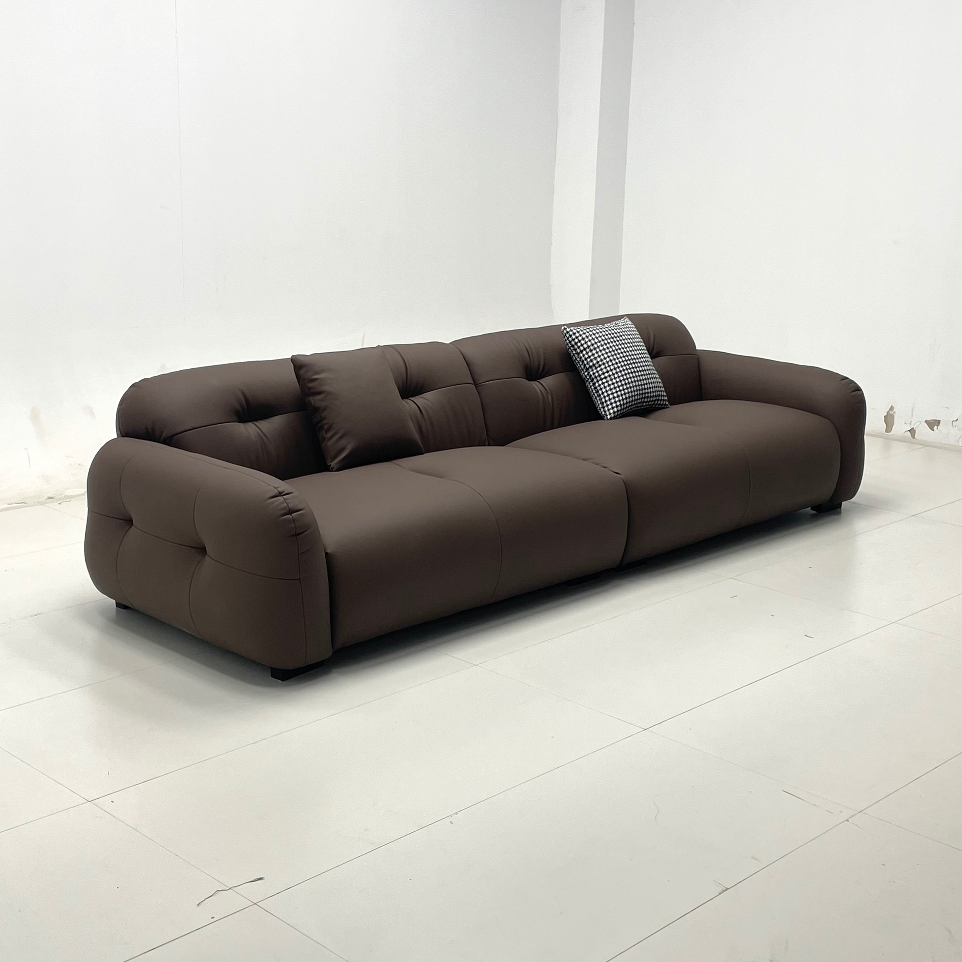 型号:云团沙发(高定款)材质:生态真皮+进口落叶松实木框架+加宽7cm橡筋+镀铬蛇簧+东亚40高密度海绵+抱枕羽绒填充皮质:生态真皮规格:2400*1000*700mm2600*1000*700mm2800*1000*700mm3000*1000*700mm3200*1000*700mm3400*1000*700mm