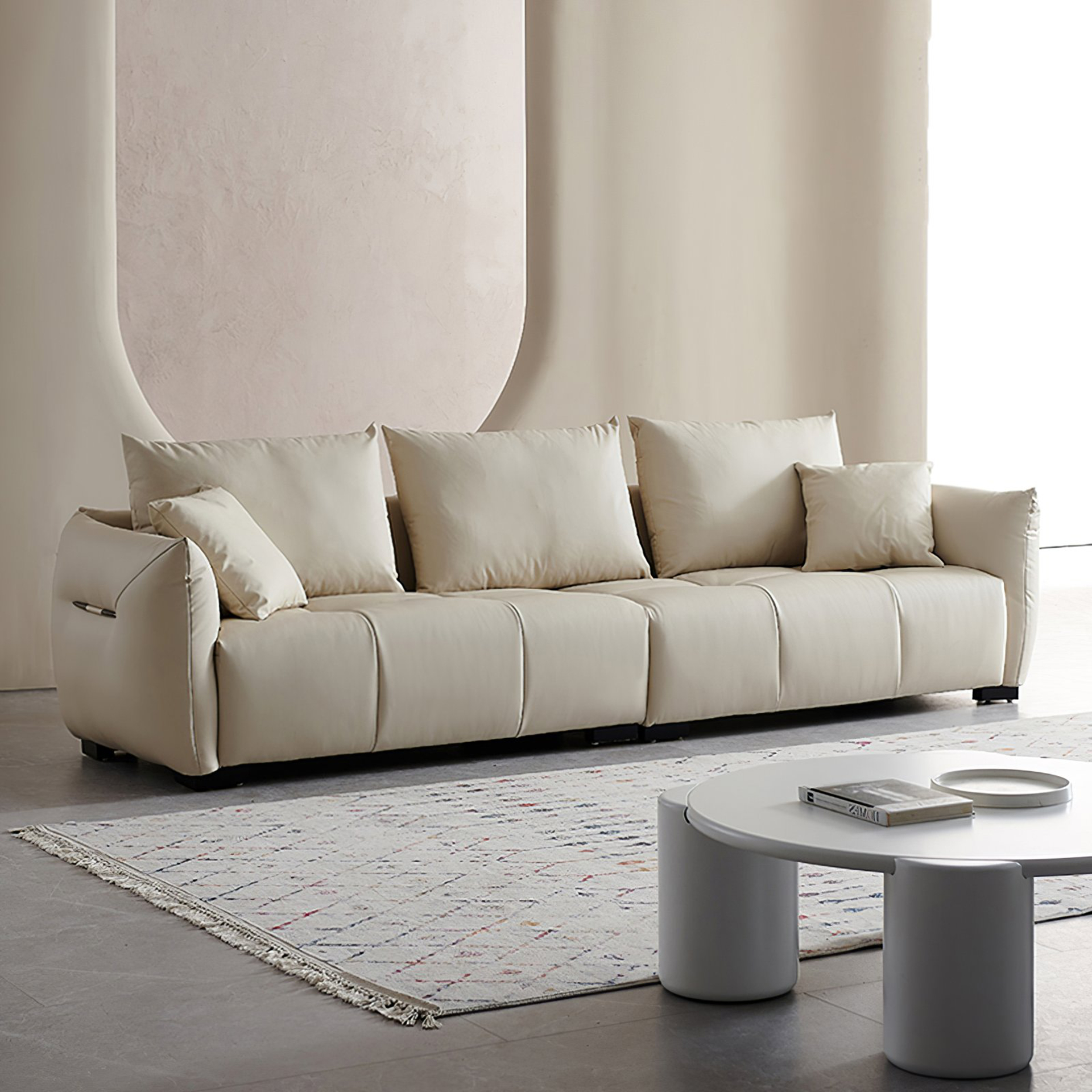 品名:米尔顿沙发材质:生态真皮+落叶松框架+加宽7cm橡筋+镀锌蛇簧+东亚40高密度海绵+靠包.抱枕羽丝绵填充皮质:生态真皮规格:2400*920*950mm2600*920*950mm2800*920*950mm3000*920*950mm3200*920*950mm3400*920*950mm