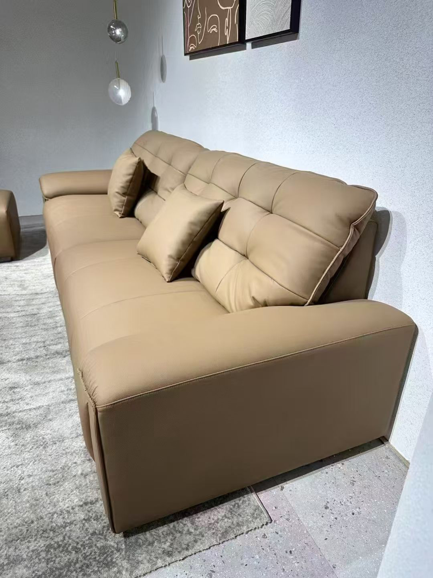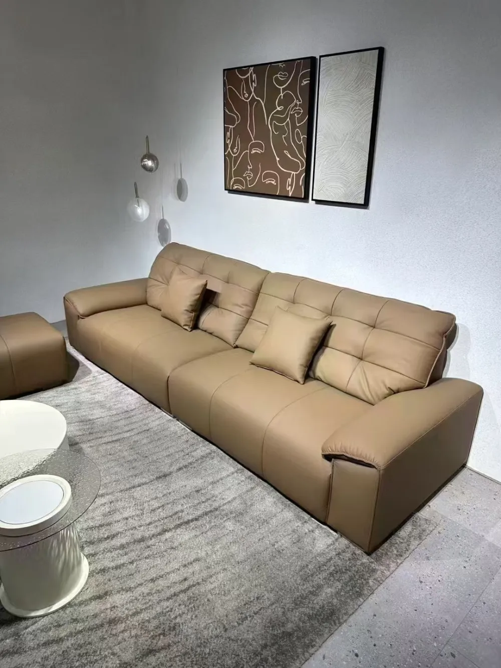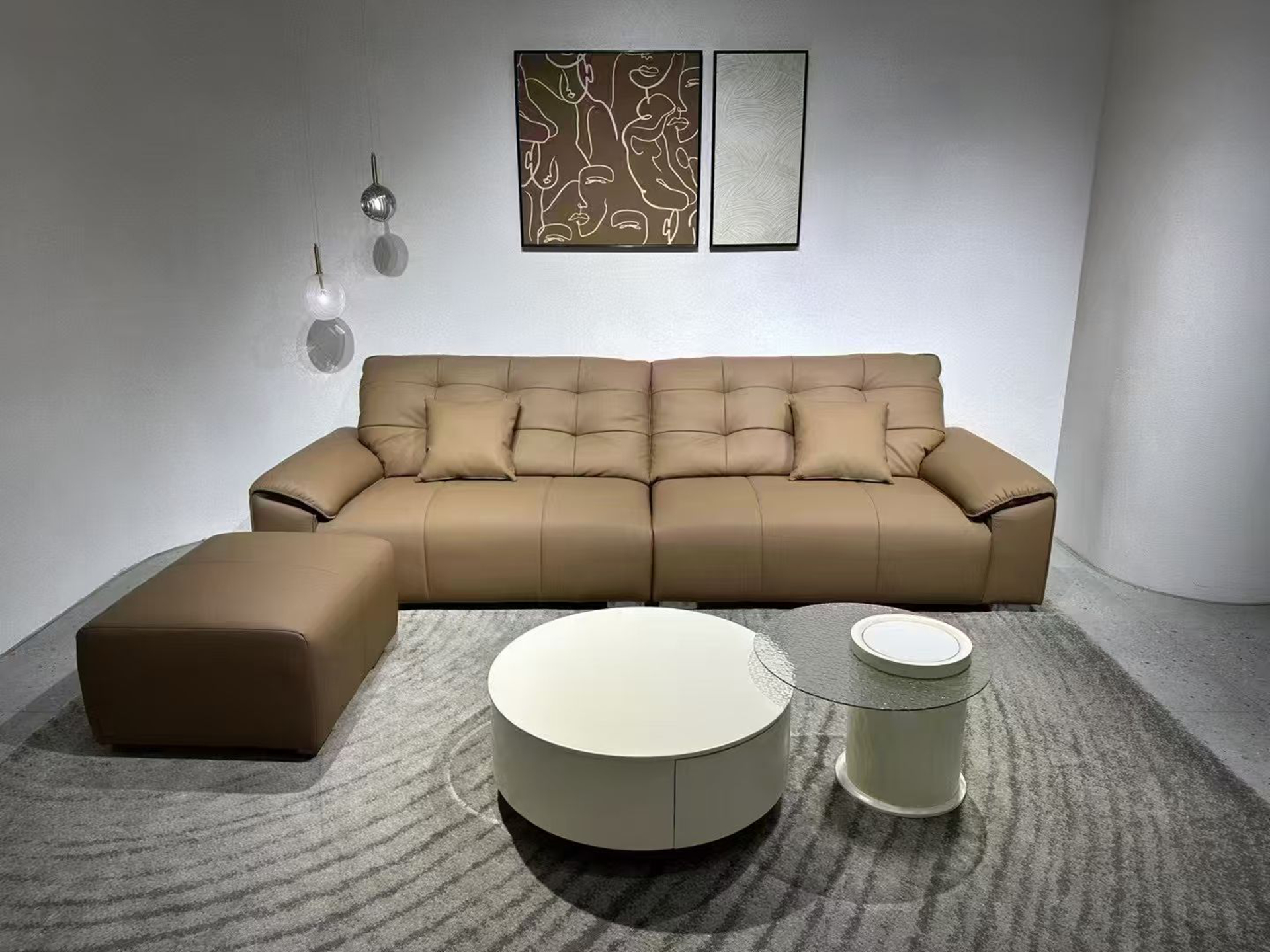 品名:939华夫沙发材质:一字木脚;;高回弹海绵;3.8线径高锰钢蛇形弹簧。皮质:生态真皮规格:2800*1000*960mm 3000*1000*960mm 3200*1000*960mm 3400*1000*960mm 650*750*420mm脚踏