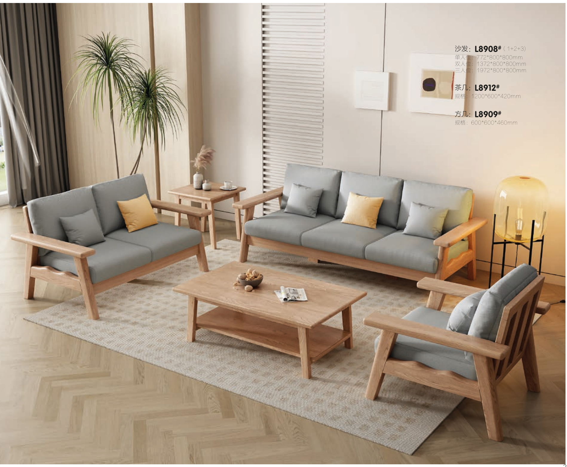 型号:L8908沙发颜色:暖杏色/胡桃色材质:白蜡木L8908沙发规格:单人位:长772*800*800mm双人位:长1372*800*800mm三人位:长1972*800*800mm四人位转角(1+3+脚踏):长2572*1600*800mm五人位:长3490*680*685mm脚踏:640*1035mmL8912长茶几:1200*600*420mmL8909方角几:600*600*460mm