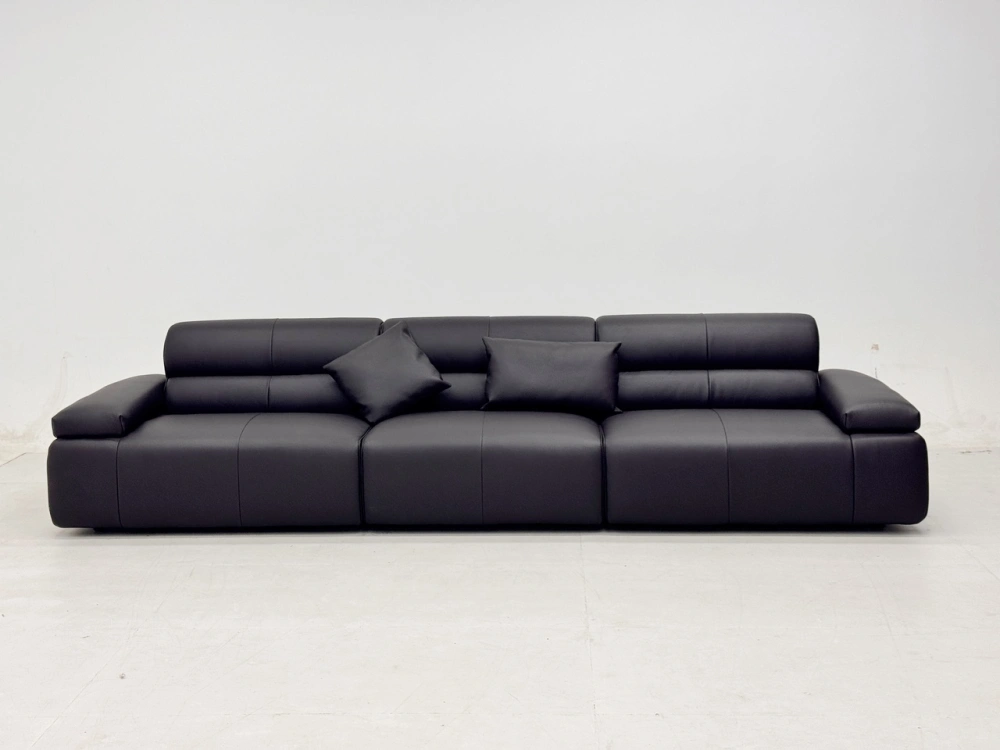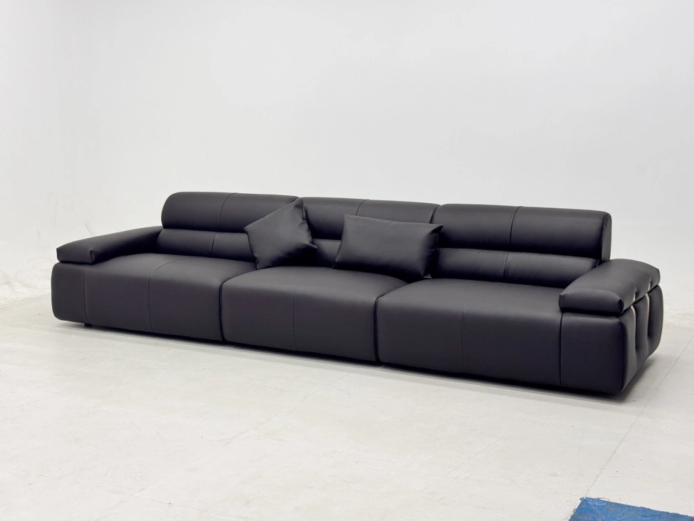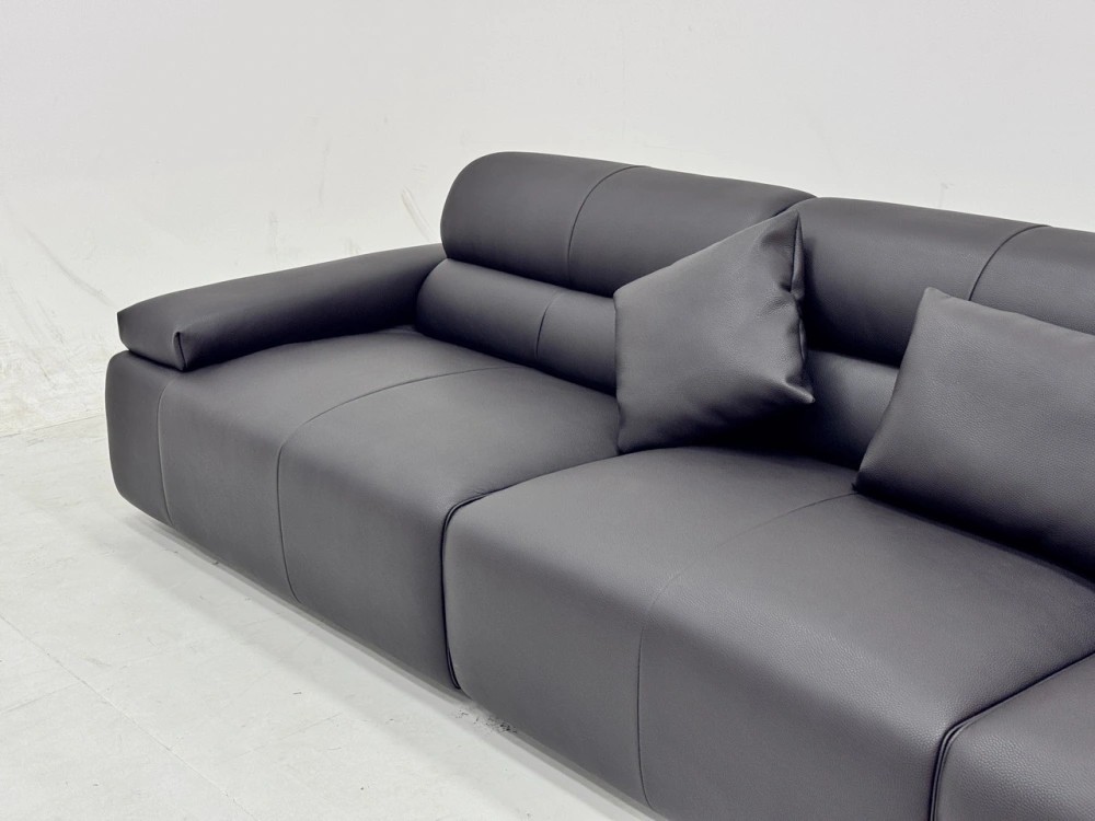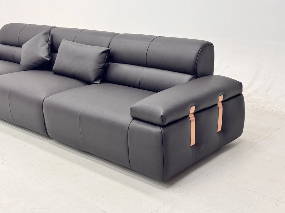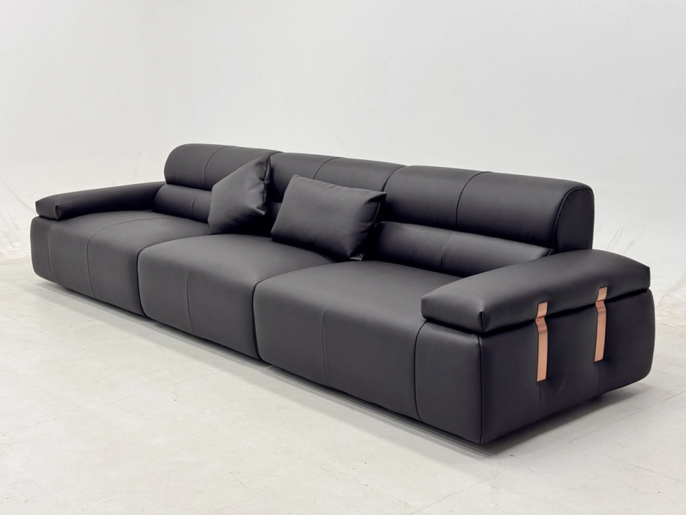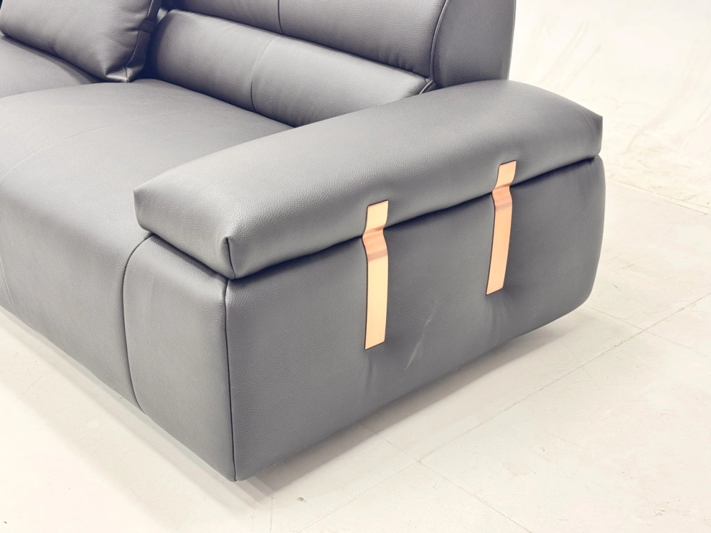 材质:生态真皮,3*10落叶松框架+4.0线径高锰钢蛇形镀金弹簧,13cm三层国标35kg/立方米密度海绵,背靠3D丝绵填充。