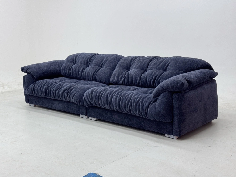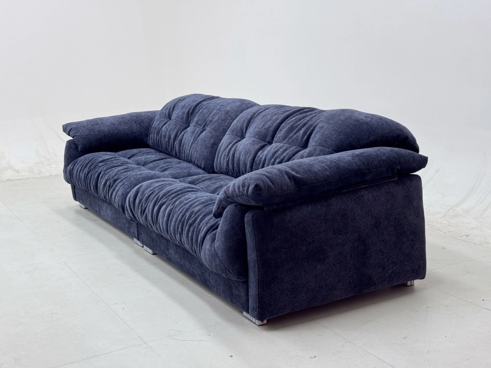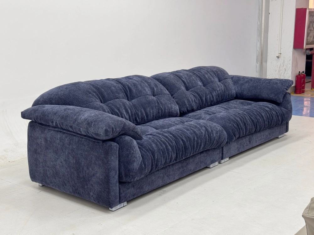 材质:雪尼尔,3*10落叶松框架+4.0线径高锰钢蛇形镀金弹簧,坐垫海绵+羽绒3D丝绵填充,三层国标35kg/立方米密度海绵,背靠手3D丝绵填充。